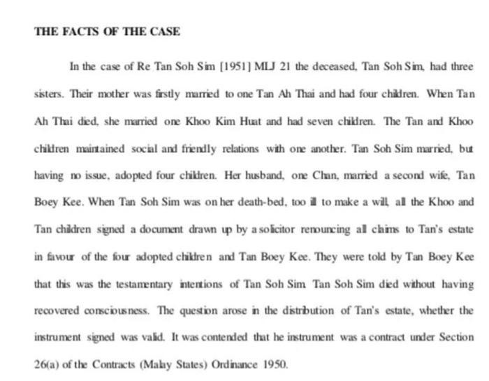 This Is A Contract Tan Soh Sim Ors V Tan Saw Keow 1951 Mlj 21 Case Law Is One Of Course Hero